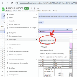 UNA VEZ DESCARGADO EL ARCHIVO, ABRIR EL MISMO, HACER CLICK EN ARCHIVO Y DESPUES CLICK EN DESCARGAR, GUARDAR EN FORMATO EXCEL COMO FIGURA EN LA IMAGEN